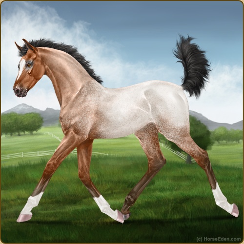 Color: Light Bay Roan Varnish Frost Appaloosa