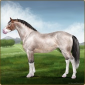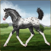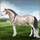 Name: Merry SilverAge: 4 Mare Color: Smokey Grullo Sabino Snowflake Appaloosa Breed: Irish Sport Horse Foal Rating: E/E/W |  |