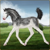 Name: Mare 43176472 EEPAge: 2 Mare Color: Silver Grullo Splash White Breed: Irish Sport Horse Foal Rating: E/E/P |  |