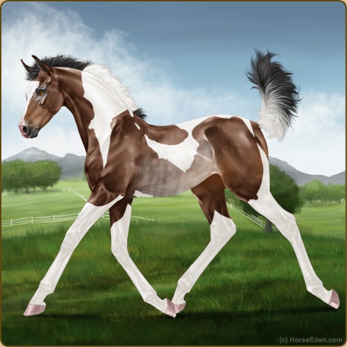 Color: Brown Tobiano Rabicano