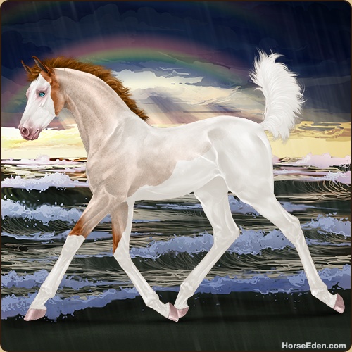 Breed a triple Premium Rabicano, Sabino, and Splash White foal.