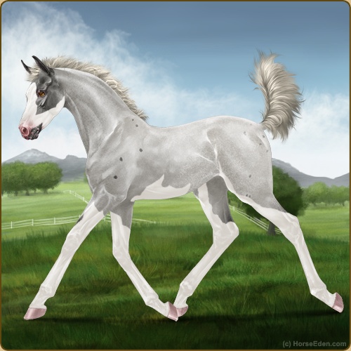 Color: Silver Roan Sabino Frost AppaloosaHorse Nbr: 42060859Breed: Irish Sport HorseSex: MareBirthdate: September 7, 2025Age: 2Birth Year: 194Height: 12.3 Hands