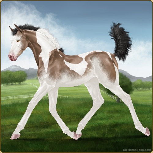 Color: Brown Buckskin Tobiano Splash White Sabino