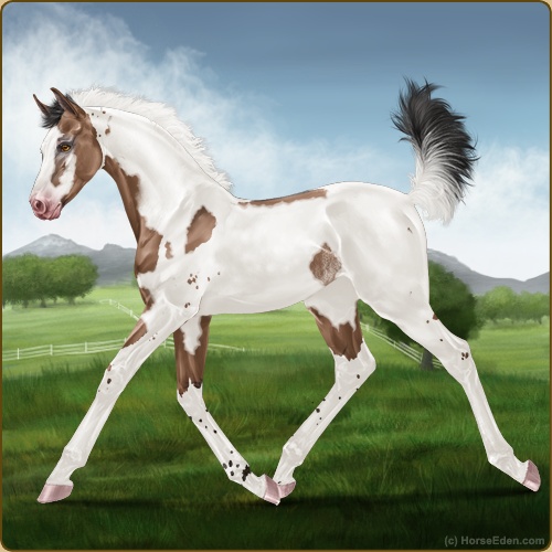 Color: Mahogany Bay Dun Tobiano Rabicano Frame
