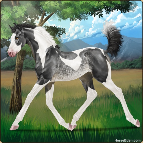 Color: Black Tobiano Splash White Rabicano