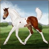 Name: WeDan X Zaito 199Age: 3 Mare Color: Red Roan Sabino Frost Appaloosa Breed: Sport Pony Foal Rating: E/E/E |  |