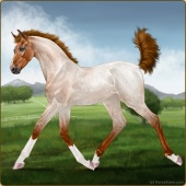 Name: Just Dance GHCAge: 5 Mare Color: Mahogany Bay Roan Breed: Sport Pony Foal Rating: E/W/E |  |