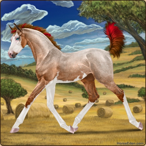 Color: Red Roan Splash White