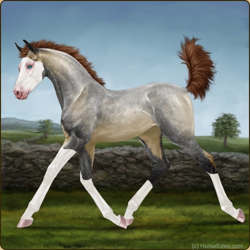 Color: Dark Red Roan Dun Splash White