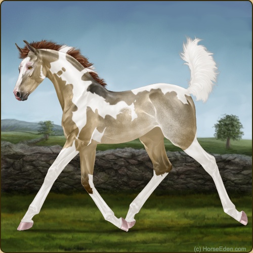 Color: Dark Red Dun Tobiano Rabicano