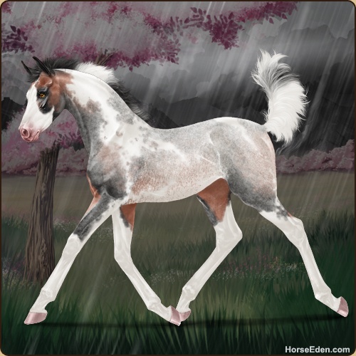 Color: Blood Bay Roan Dun Tobiano Splash White Rabicano