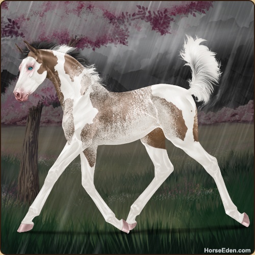 Color: Brown Dun Tobiano Splash White Rabicano
