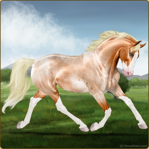 Color: Flaxen Red Roan Splash White