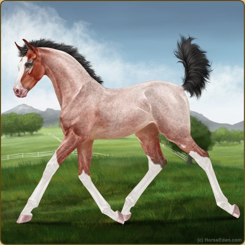 Color: Blood Bay Roan Sabino