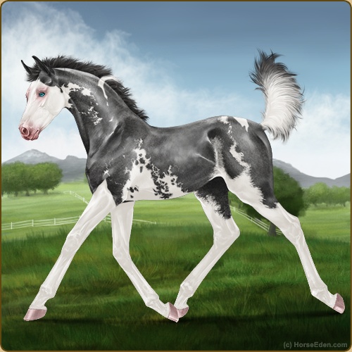 Color: Smokey Black Tobiano Splash White Sabino