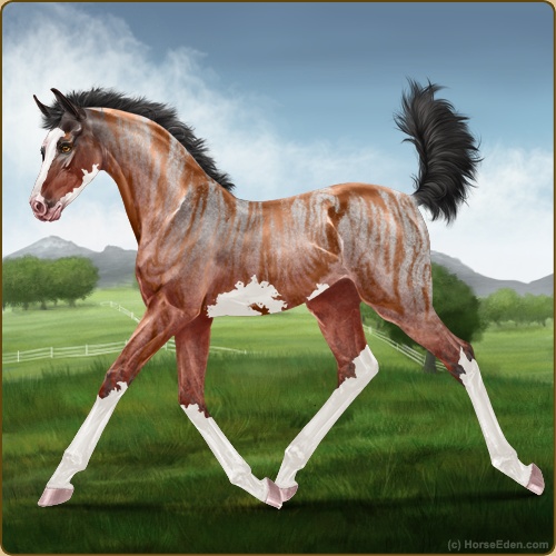Color: Blood Bay Roan Sabino Brindle