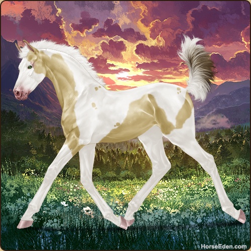 Color: Amber Champagne Tobiano Splash White