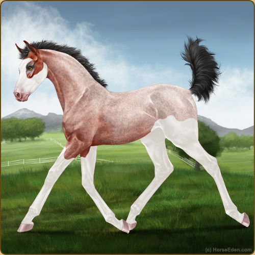 Color: Blood Bay Roan Splash White