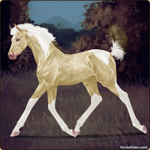 Color: Amber Champagne Tobiano Brindle