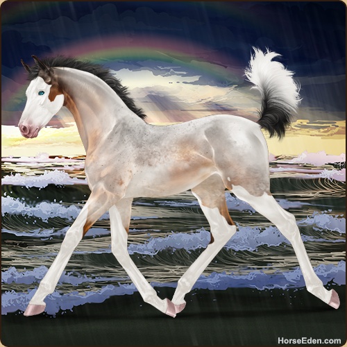 Color: Copper Bay Roan Splash White