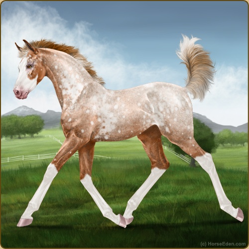 Color: Red Roan Splash White Varnish Snowflake Appaloosa