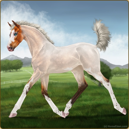 Color: Silver Copper Bay Roan Splash White