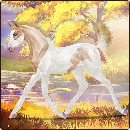 Color: Flaxen Red Roan Dun Tobiano Splash White