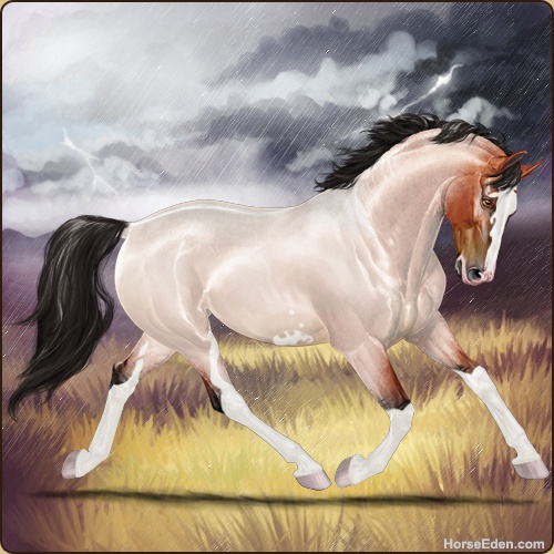 Color: Blood Bay Roan Dun Sabino