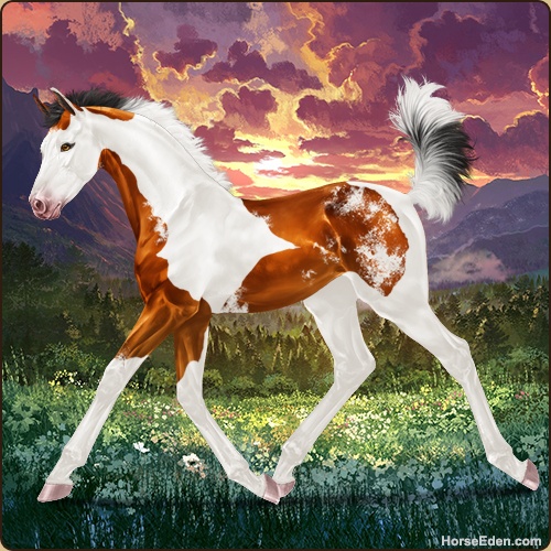 Color: Copper Bay Tobiano Splash White Sabino