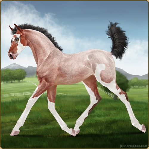 Color: Blood Bay Roan Sabino