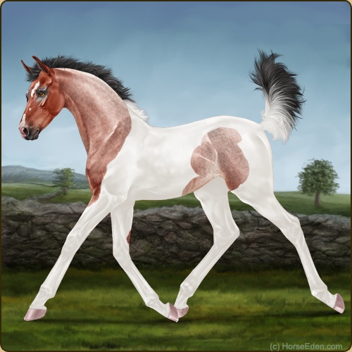 Color: Blood Bay Roan Tobiano Rabicano