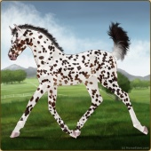 Name: Ҝ The Christmas KidAge: 3 Mare Color: Brown Varnish Leopard Appaloosa Breed: Knabstrupper Foal Rating: W/A/Sub |  |