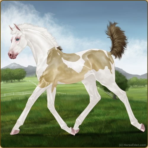 Color: Amber Champagne Tobiano Splash White