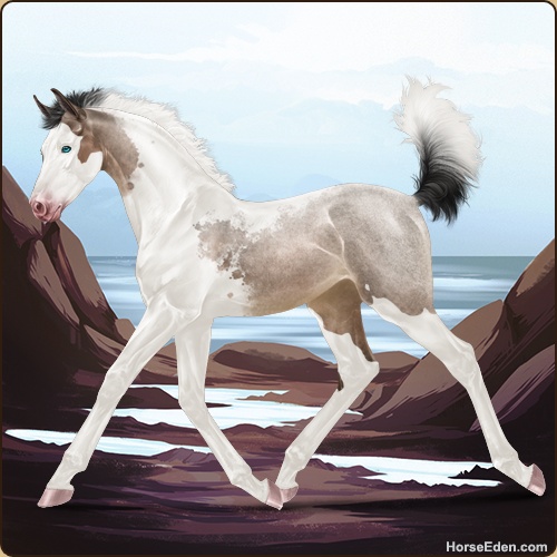 Color: Mahogany Bay Roan Dun Tobiano Splash White