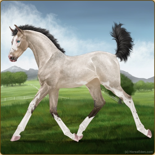 Color: Brown Dunskin Roan Splash White