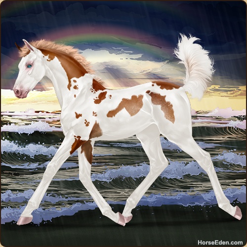 Color: Flaxen Chestnut Tobiano Splash White Sabino Rabicano
