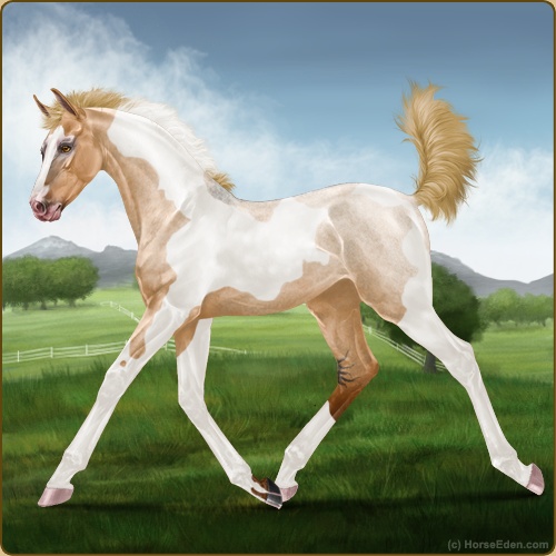 Color: Flaxen Red Roan Dun Tobiano