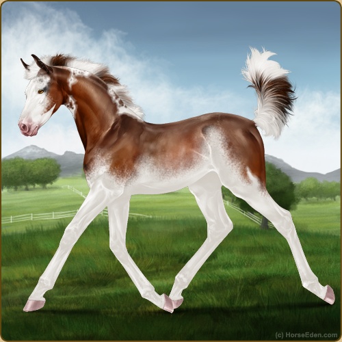 Color: Chestnut Tobiano Splash White Sabino Rabicano