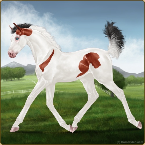 Color: Blood Bay Tobiano Splash White Sabino Appaloosa