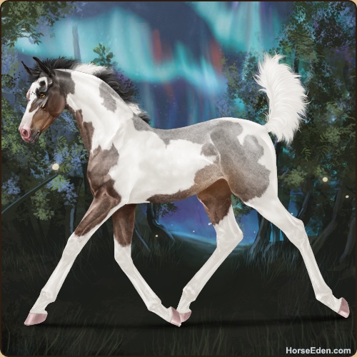 Color: Brown Roan Tobiano Rabicano