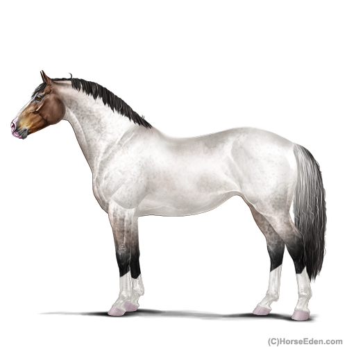 Color: Brown Roan Tobiano Rabicano