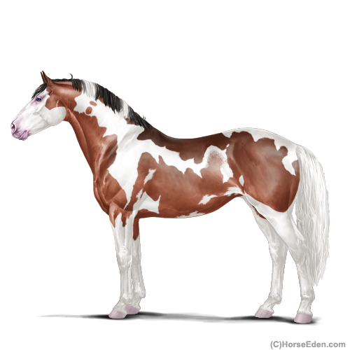 Color: Blood Bay Dun Tobiano Splash White Sabino