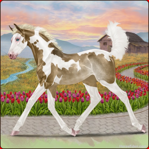 Color: Chocolate Dunalino Tobiano Splash White Rabicano