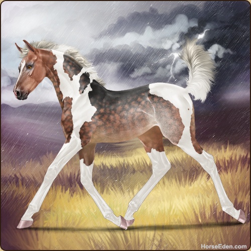 Color: Silver Blood Bay Dun Tobiano Rabicano