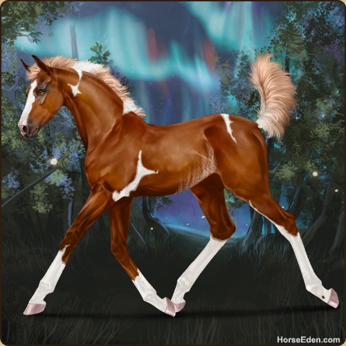 Color: Flaxen Chestnut Tobiano Rabicano