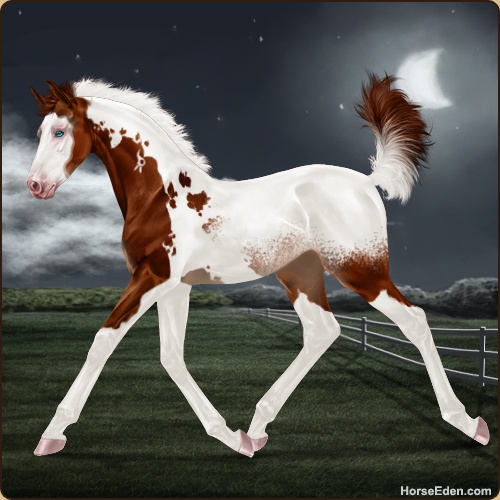 Color: Chestnut Tobiano Rabicano Frame Snowcap Appaloosa