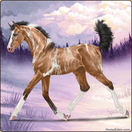 Color: Light Bay Dun Tobiano Brindle