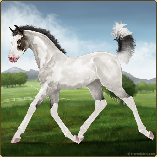 Color: Roan Grullo Splash White Rabicano Frame