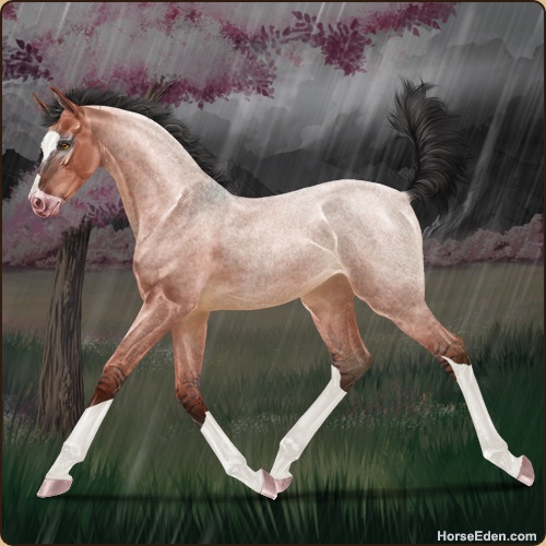 Color: Blood Bay Roan Dun Splash White