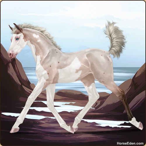 Color: Silver Blood Bay Roan Dun Splash White Frame